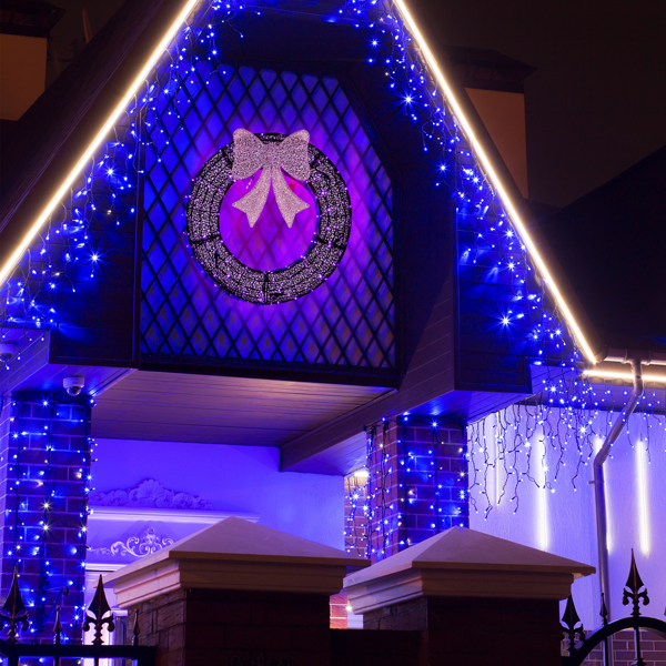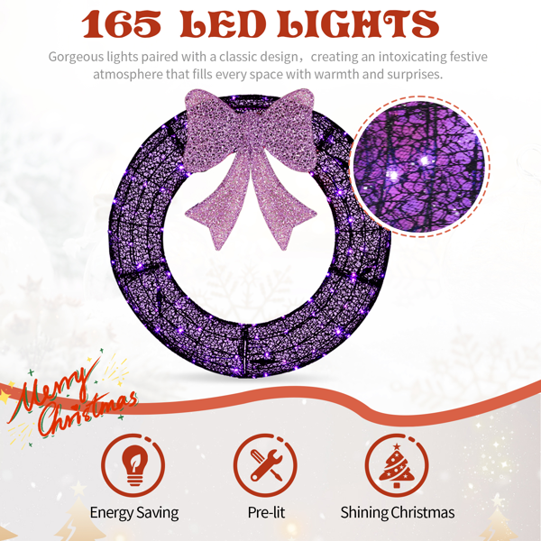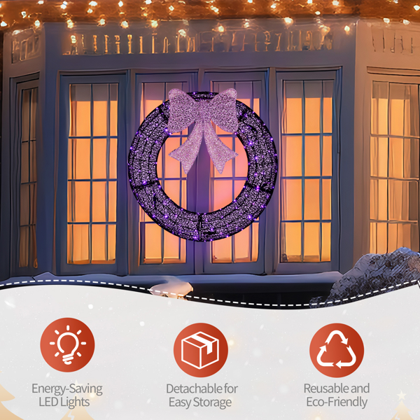 1. Holiday Wreath & Purple Bow: Elevate your holiday decor with this eye-catching wreath and elegant purple bow. Its festive design will transforming your gate, garage, or exterior walls into a dazzling Christmas display.